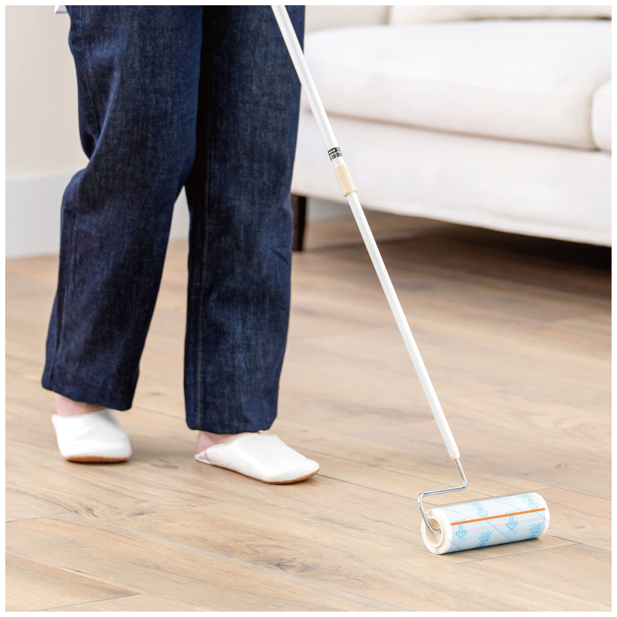 独自のW粘着技術を採用し、フローリングから、カーペット、畳、ビニル床まで、さまざまな床材に使えるマルチタイプの『コロコロ』です。